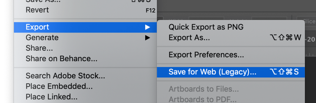 For this, we’ll use the “Save for Web” legacy tool, because it offers some useful options.